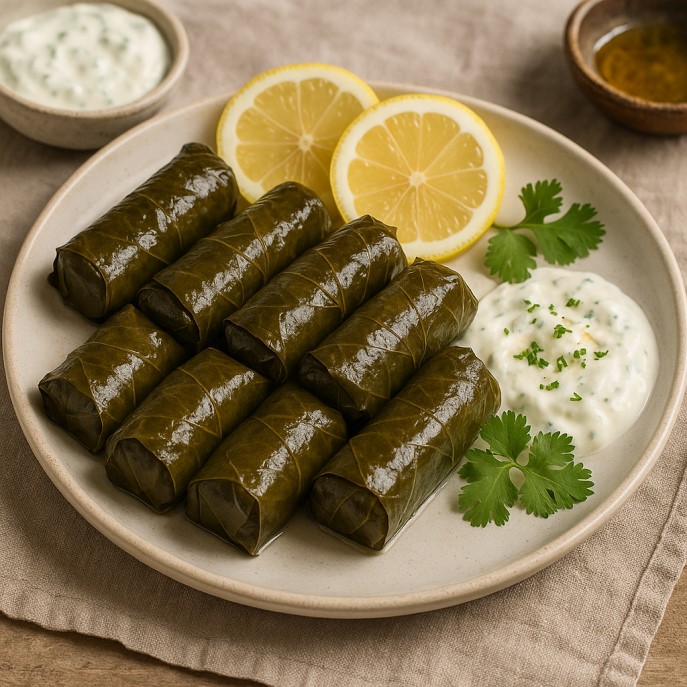 Small grape leaf rolls stuffed with rice, herbs, and sometimes meat.